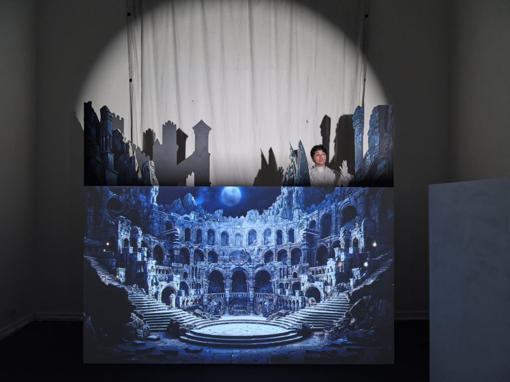 Yang Liuxizi initially felt that the castle design didn’t match her dream’s imagination. Referencing M.C. Escher’s visual illusion techniques, she designed several versions, but the limitations of two-dimensional representations couldn’t adequately convey her ideas. The question of how to retell stories within static images and unfold them over time, has always been the challenge of narrative art. Later, she read about Vincenzo Scamozzi’s 16th-century Palladian-style Olympic Theater in Vicenza, Italy, which used perspective illusion techniques to extend illusory space beyond backdrops and archways, centered around the viewer and expanding in all directions, blending reality with the virtual, creating a moving tableau.