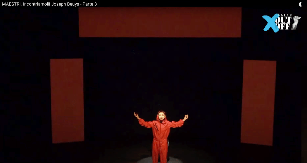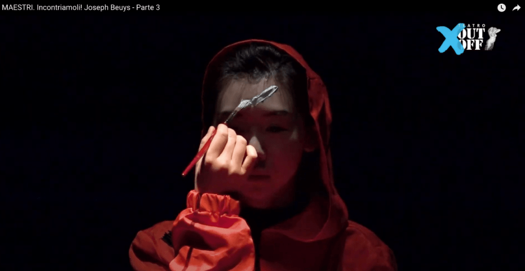 2021年5⽉⽶兰 Teatro Out Off剧院为纪念博伊斯诞⾠⼀百周年,邀请来⾃世界各地的艺术家们参加主题为“遇⻅⼤师:约瑟夫博伊斯”的⾏为艺术及研讨会。我的作品《送魂》,是亚洲尤其东南亚地区的⼀种习俗,通过仪式,希望博伊斯的灵魂解开心愿,得到安息。以阴阳五⾏为先导,祈祷平安。