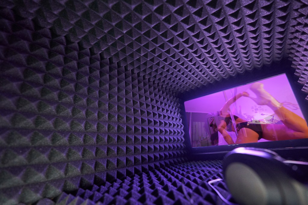 The installation was inspired by a dream of mine after six months of psychotherapy, trundling along through sorrow and anxiety. I dreamed of a “therapy section” with a pole dancer. So I recreated it, hoping to bring a movement of peace to whoever was suffering as well, “You are not alone, even when you are alone”.
